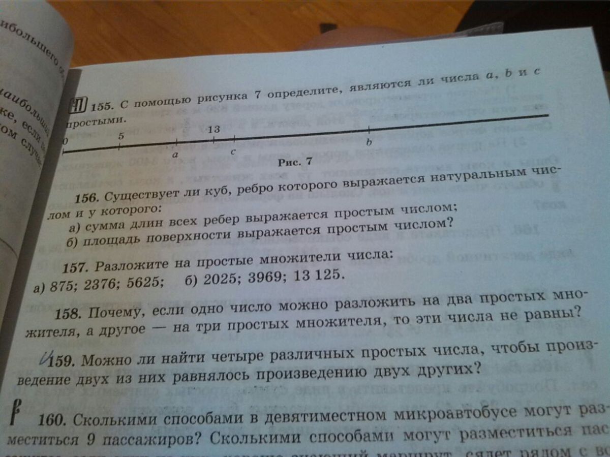 159) Найти такие числа невозможно. Произведение простых чисел раскладывается именно на эти простые сомножители! 11*13-произведение простых чисел; 7*19-произведение простых чисел. Чтобы произведения были равны, необходимо, чтобы сомножители были равны!