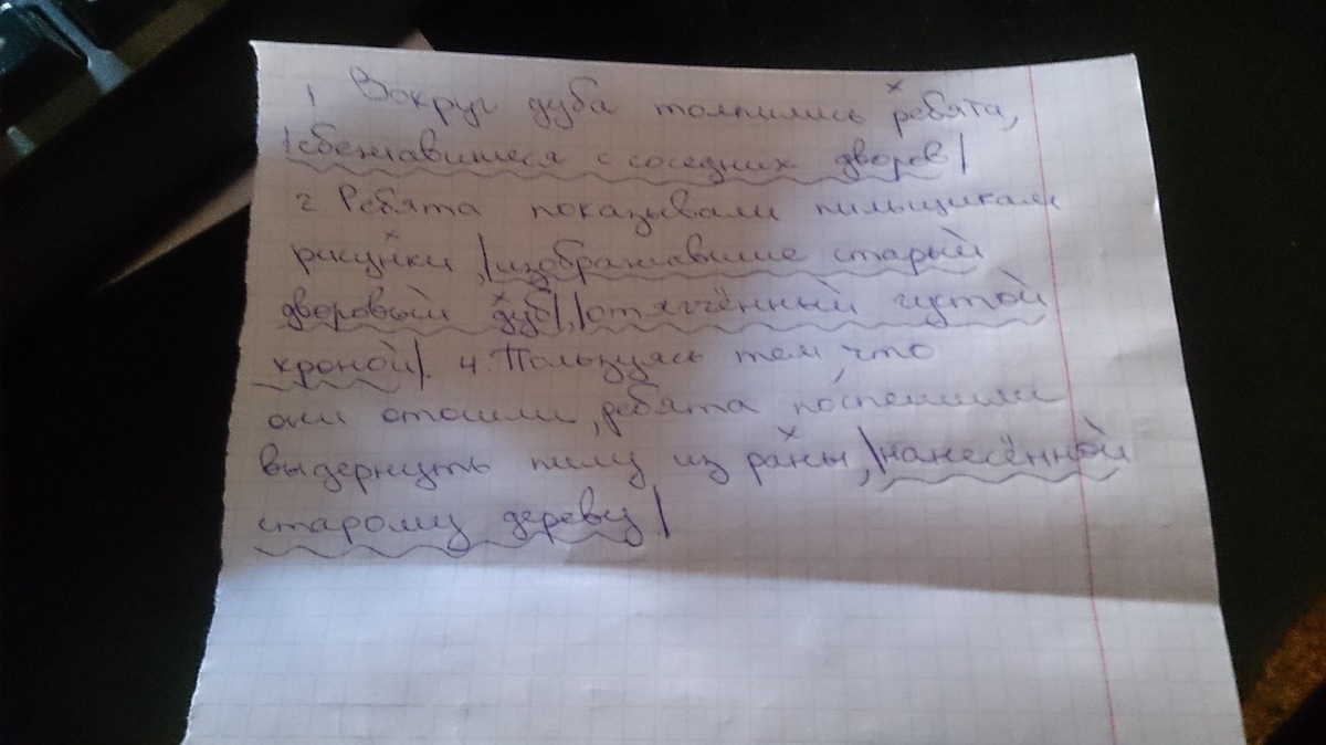 2. Ребята показывали пильщикам рисунки, изображавшие старый дворовый дуб...
