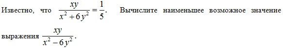 Подставим полученные значения y = 1/2*x в выражение x*y/(x^2-6*y^2), получим -1.Это и есть наименьшее возможное значение.
