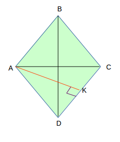 Дано: АВСД - ромб. АК = 10, ВД = 20.
