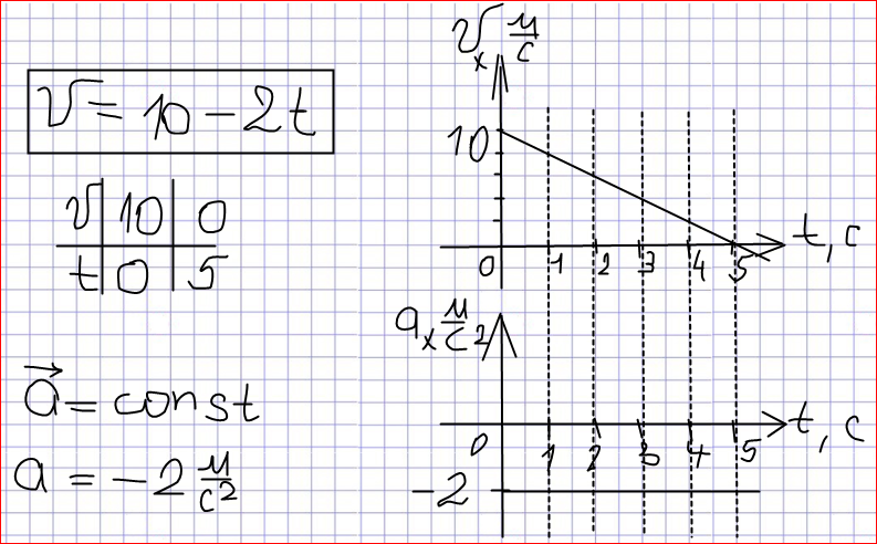 Построение графиков зависимости скорости и ускорения от времени смотрите на фото.