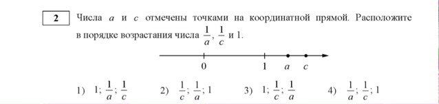 Числа а и с отмечены точками на координатной прямой. Расположите вы порядке возрастание числа 1/а,1/с,1.