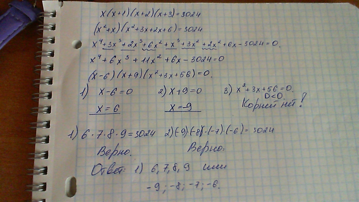 С отрицательными числами: (-9)*(-8)*(-7)*(-6)=3024