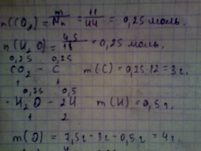 При сгорании 7,5 гр вещества образуется 11 гр углекислого газа и 4,5 воды , плотность по водороду равна 15 . Какова формула вещества ? (Если можно подробнее) )))