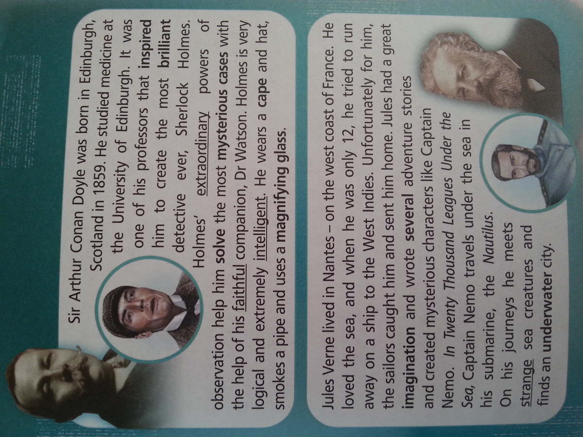Жюль Верн жил в Нанте - на западе Франции. Он любил море и когда ему было всего лишь 12, он попытался сбежать на корабле в Западную Индию. К несчастью, моряки заметили его и отправили домой. У Жюля было богатое воображения и он написал несколько приключенческих историй и создал загадочных персонажей, таких, как Капитан Немо. В "Двадцать тысяч льях (французская мера длины) под водой", Капитан Немо путешествовал в своей подводной лодке Наутилус (или как-то так). Во время своего путешествия он встретил странных морских существ и открыл подводный город.