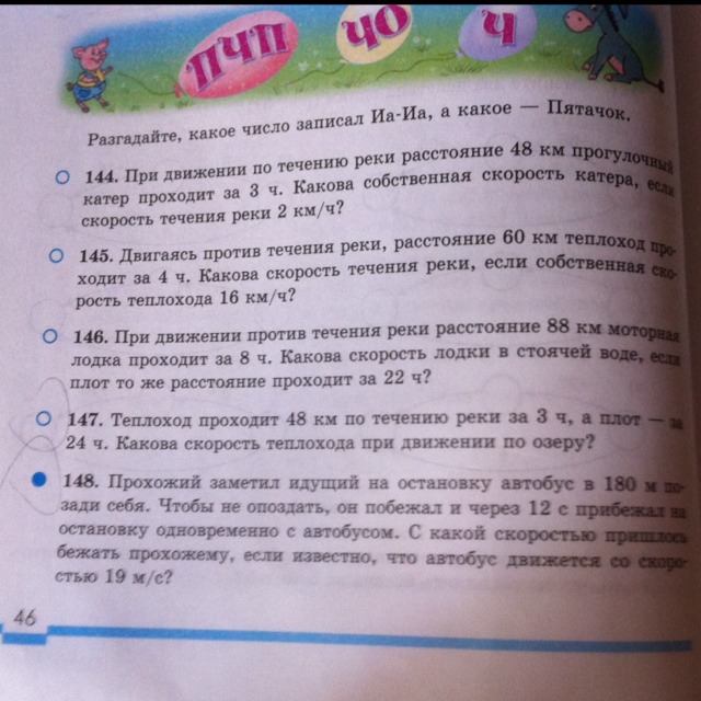 №148 Обозначим х - скорость пешехода.Заметим, что автобус ехал столько времени сколько бежал пешеходРазница в скоростях автобуса и пешехода 19-х