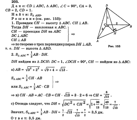 Через вершину прямого угла С прямоугольного треугольника к его плоскости проведен перпендикуляр СД, равный 1 дм. Найдите площадь треугольника АВД, если АС =3 дм, ВС=2 дм