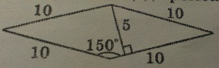 Так как тупой угол равен 150°, острый угол этого ромба равен 30°