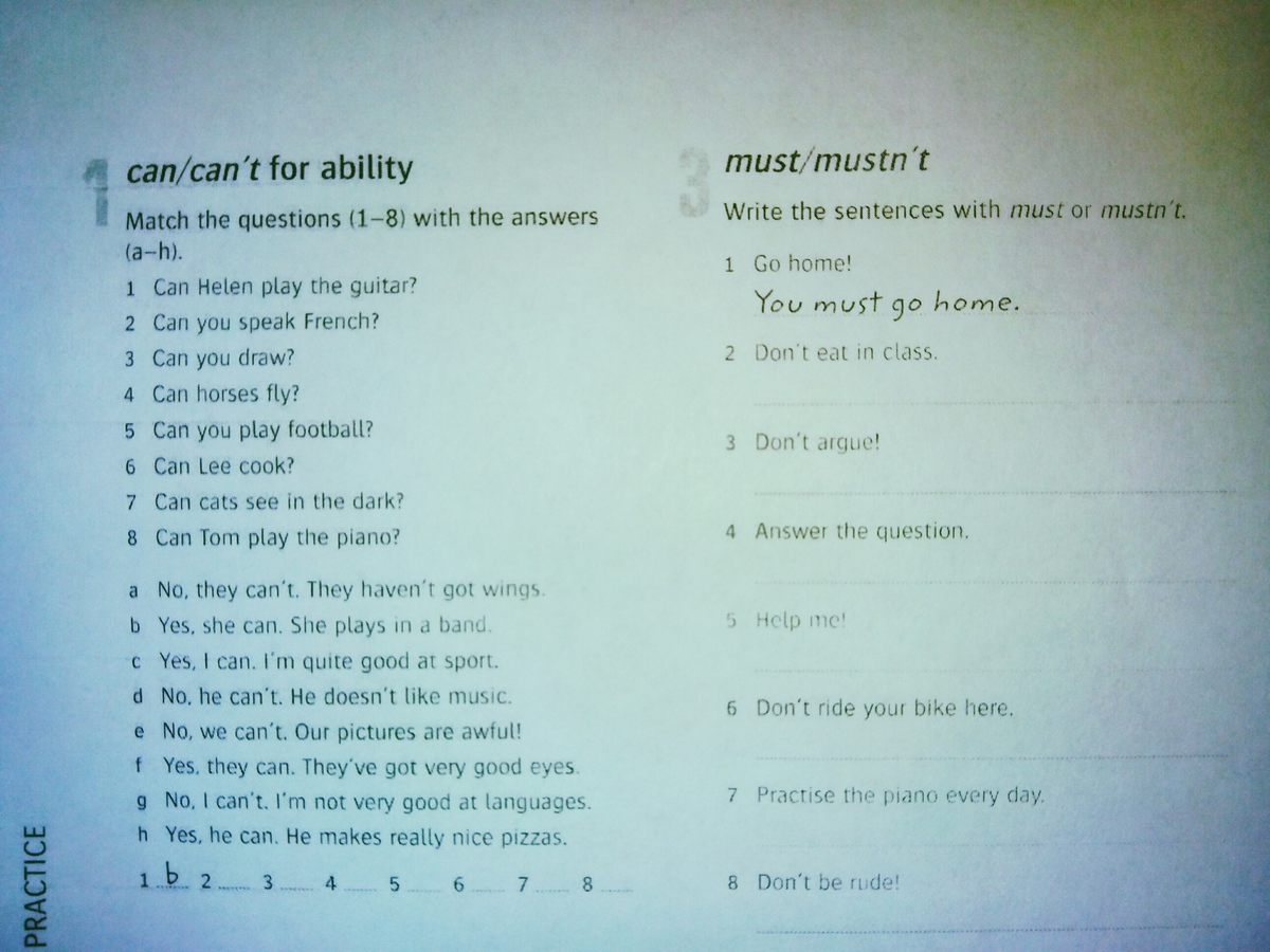 3)you mustn't eat in class