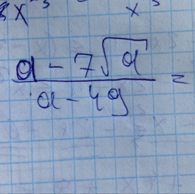 frac{a-7 sqrt{a} }{a-49}= frac{( sqrt{a})^2-7 sqrt{a}  }{( sqrt{a})^2-7^2 }= frac{ sqrt{a}( sqrt{a}-7)  }{(sqrt{a}-7)(sqrt{a}+7)}= frac{ sqrt{a} }{sqrt{a}+7}