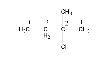 Вещество правильно называется так: 2-метил-2-хлорбутан
