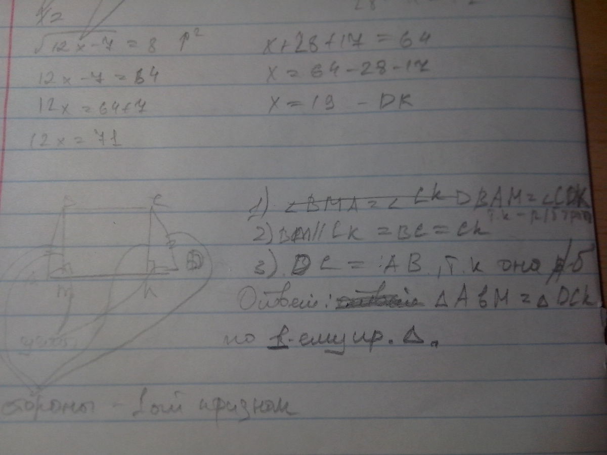 В равнобедренной трапеции abcd к основанию ad проведены перпендикуляры bm иck.Докажите, что треугольник abm и dck равны.