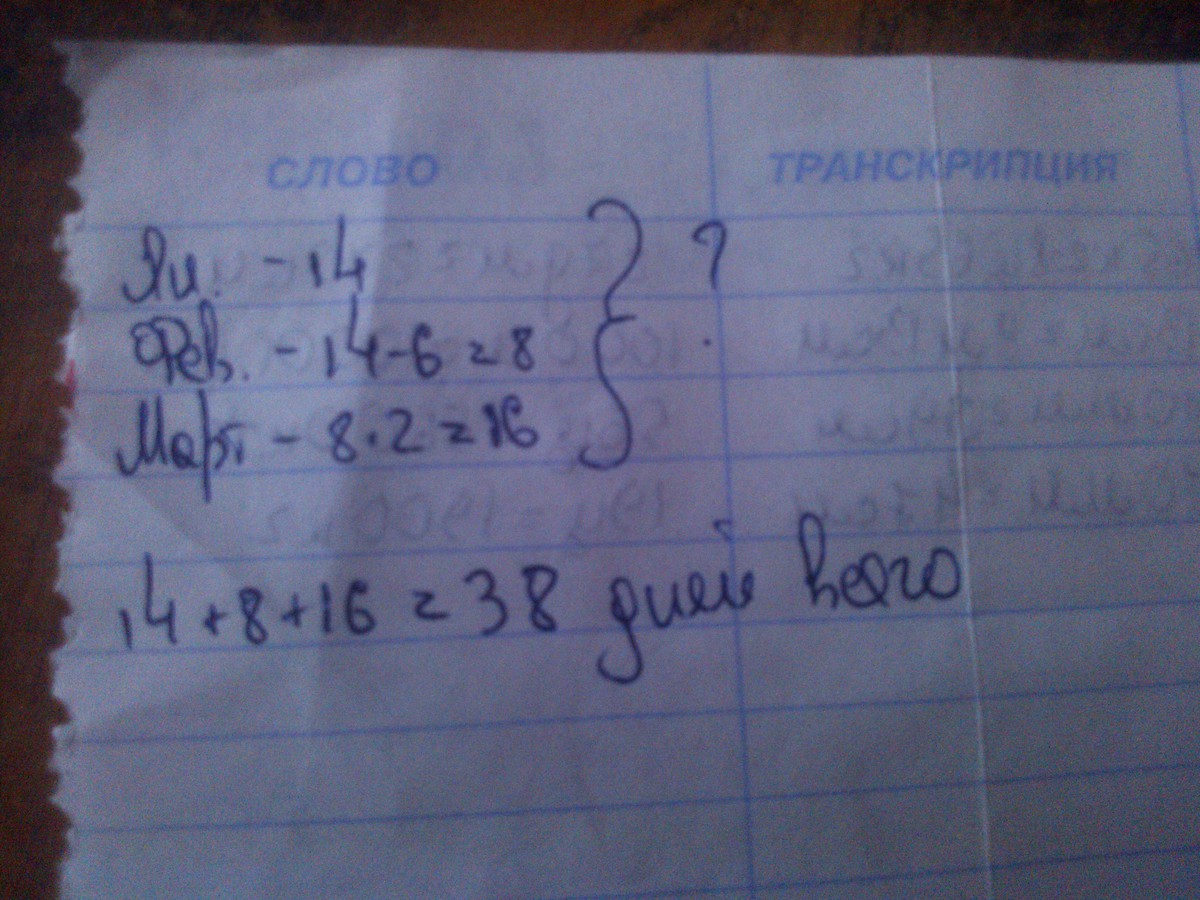 В январе было 14 солнечных дней,в феврале - на 6 дней меньше,чем в январе,а в марте - в 2 раза больше,чем в феврале. Поставь вопрос и реши задачу