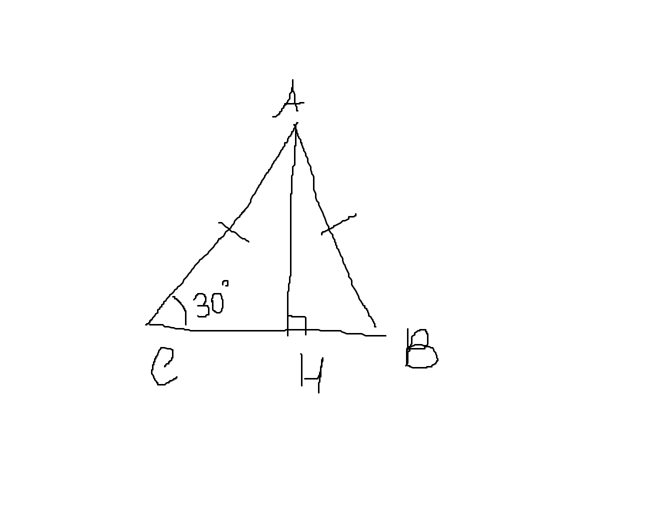 В равнобедренном треугольнике ABC угол при вершине C равен 30∘, а боковые стороны AC=BC=72. Найдите высоту AH.
