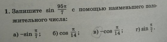sin  frac{95 pi }{7} =sin(12 frac{pi}{7} )=sin(12pi+ frac{pi}{7} )=sin frac{pi}{7}