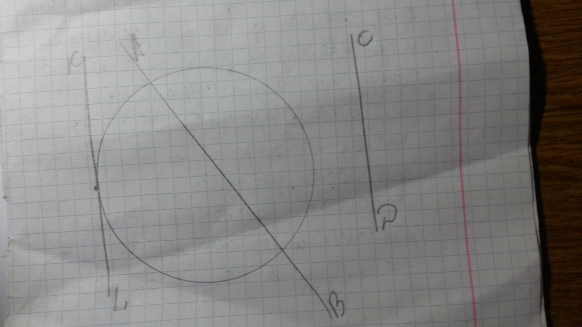 3) проведите прямую прямую KL, которая касается окружности, т.е. имеет с окружностью единственную общую точку.