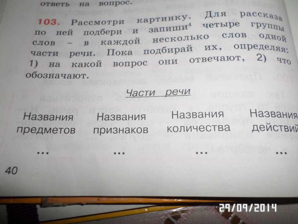 Существительное,затем прилагательное,затем числительное,а затем глагол.