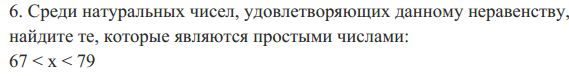 и 67 и79 являются простыми числами .Простые числа имеющие ровно два различных натуральных делится на 1 или само на себя