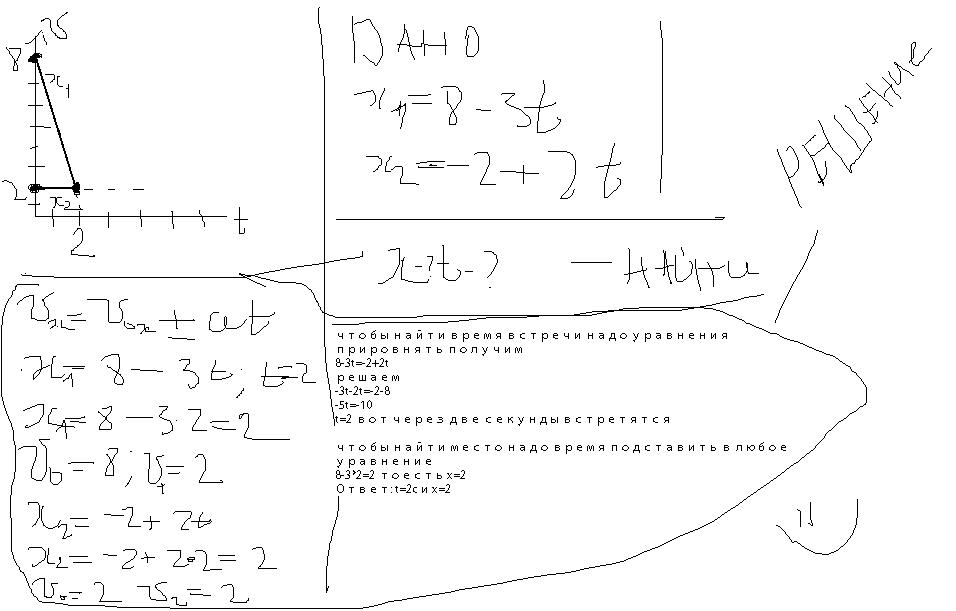 Постройте графики движения этих тел. Найдите время и место встречи.(решить задачу!)