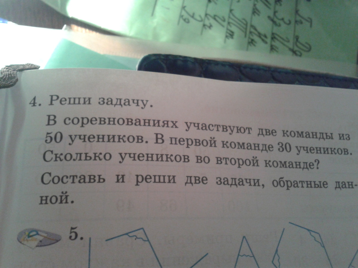 2. В соревнованиях участвуют 2-е команды из 50 учеников. Во второй команде участвуют 20 учеников. Сколько учеников участвуют в первой команде?