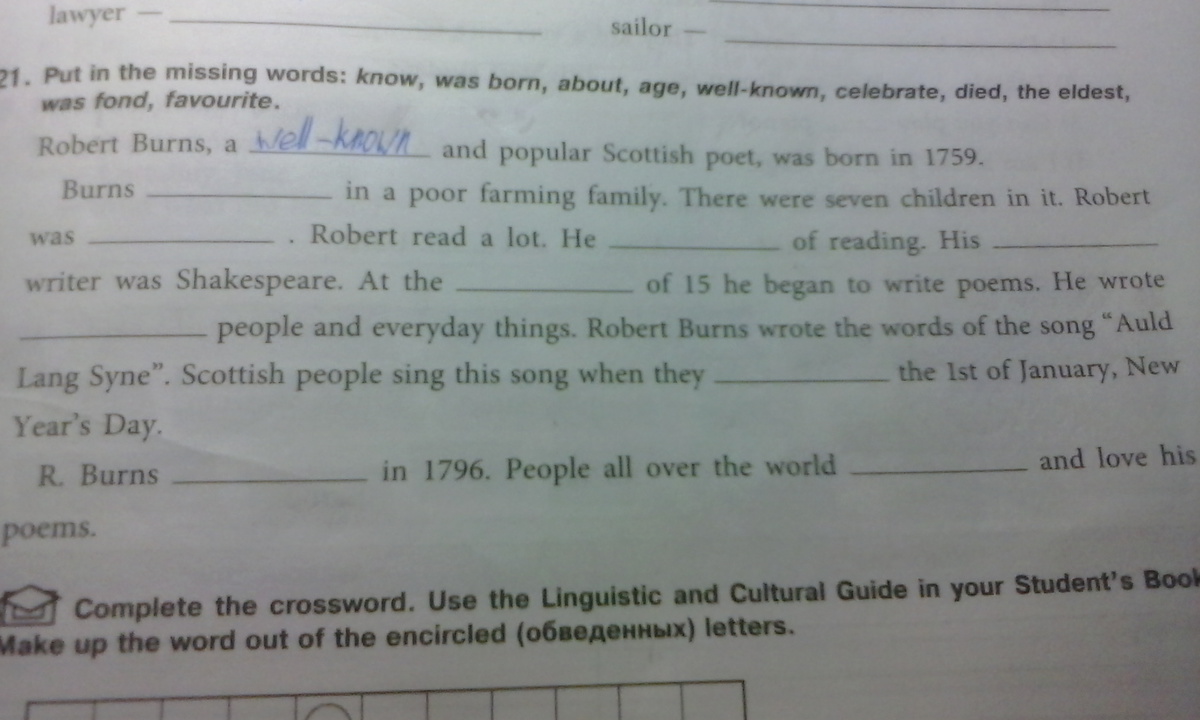 was born, the eldest, was fond of, favourite, at the age, about, celebrate, died, know.