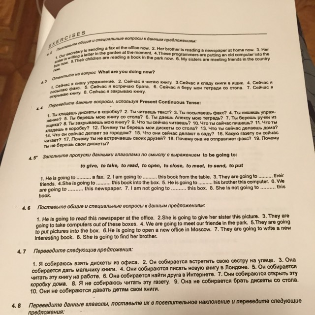1. Send 2. Take 3. Meet 4. Put 5. Give 6. Read 7. Open 8. Close