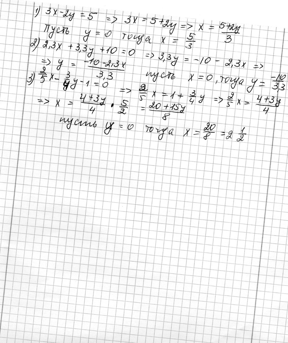 Выразите из уравнений одну из переменных через другую и найдите какие-нибудь два решения уравнения: