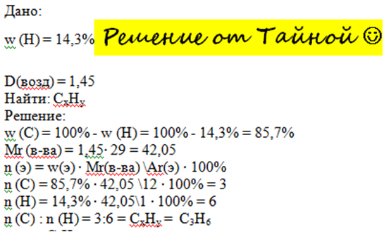 за формулою знайдена молярна маса. 1,29 * 1,45 = 42. Цією формулою відповідає ненасичений углводород. Може в умову опечатка?