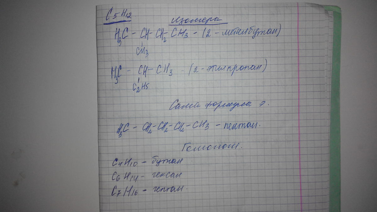С5Н12, а так же две структурных формулы его гомологов и две его формулы