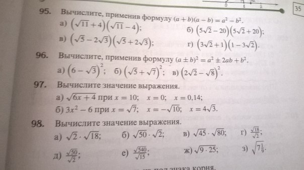 96.а) (6- sgrt3)^2 = 6^2 - 2*6*sgrt3 + (sgrt)3^2 = 36 - 12 sgrt3 +3 = 39 - 12 sgrt3.