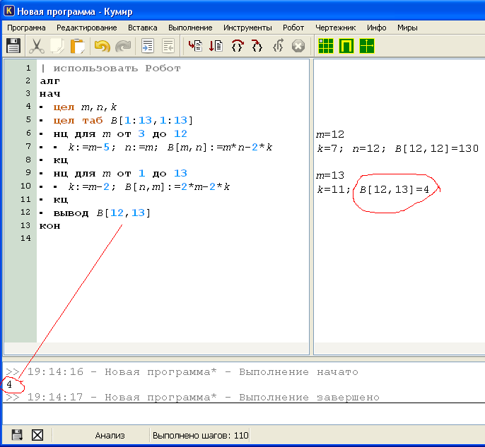 k:=m-5; n:=m; B[m,n]:=m*n-2*k