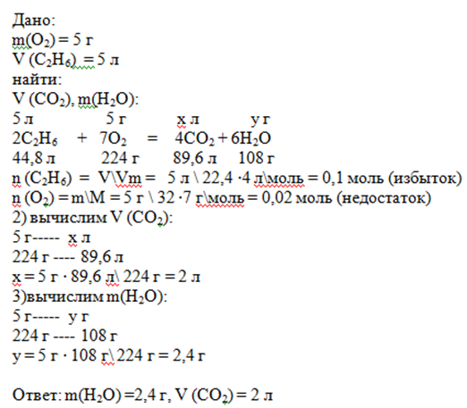 Рассчитать количество воды и углекислого газа, образующихся по реакции: