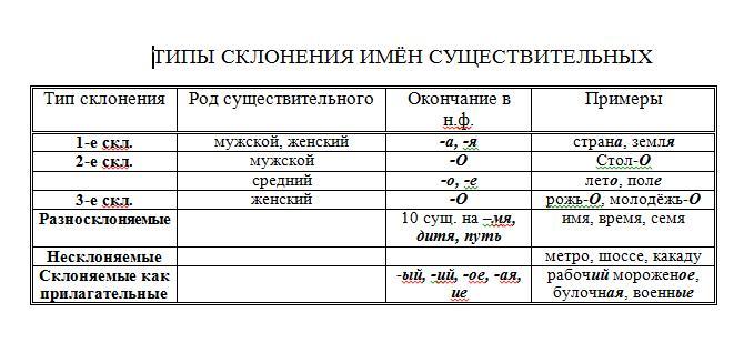 Склонение существительного определяется по роду существительного и по его начальной форме - форме И.п. единственного числа.