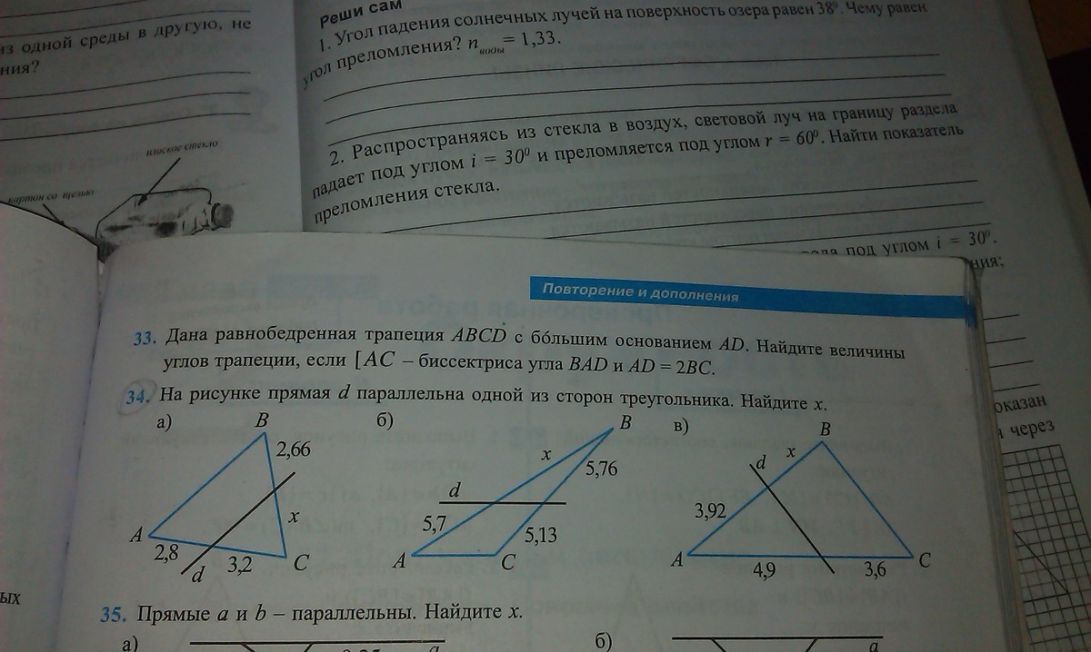 Углы равны, потому что биссектриса проведена. И внутренние накрест лежащие равны.