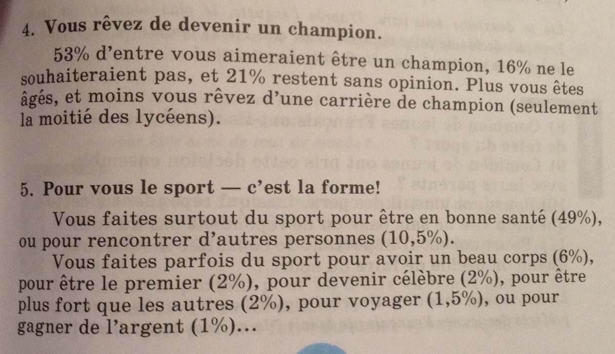 Вы особенно для спорта, чтобы быть здоровым (49) или для удовлетворения других людей (10,5). иногда заниматься спортом, чтобы иметь красивое тело, чтобы быть первым, чтобы стать известным, чтобы быть сильнее, чем другие, путешествовать, или зарабатывать деньги