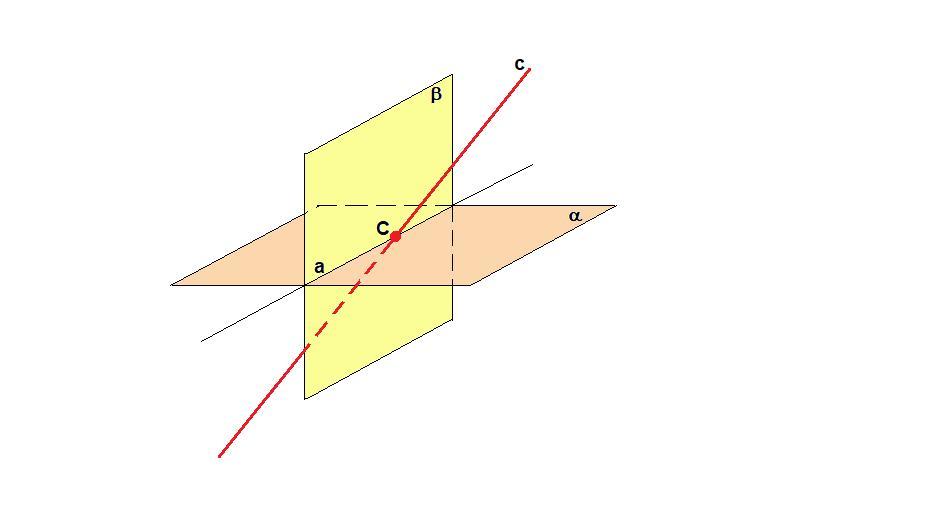 Например, на рисунке С - общая точка двух плоскостей, прямая с проходит через точку С, но плоскости пересекаются по прямой а.