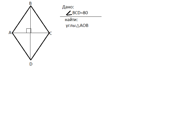 угол ВАО=ДАО=40 (диагонали ромба делят его углы пополам.