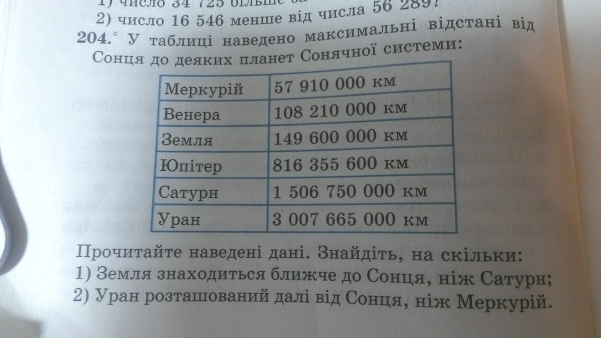 У таблиці наведено максимальні відстані від Сонця до деяких планет Сонячної системи: