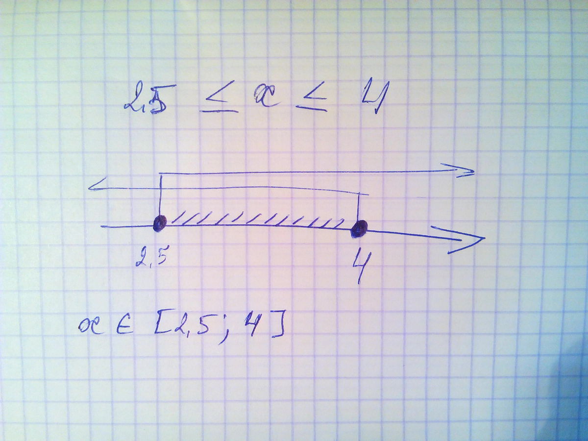 Это отрезок на координатоной прямой от точки 2,5 до точки 4