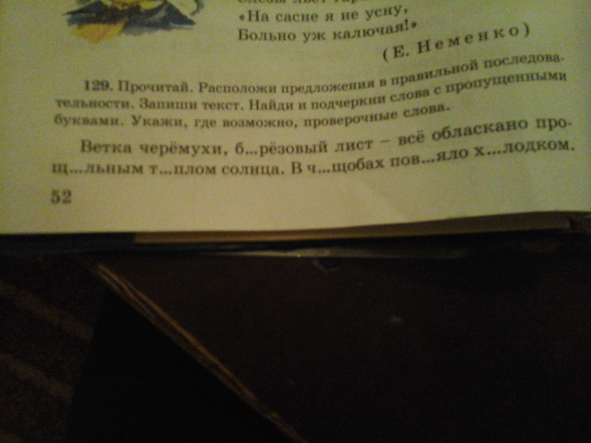 Расположи предложения в правильной последовательности. найди и почеркни слова с пропущенными буквами. укажи, где возможно, проверочные слова.