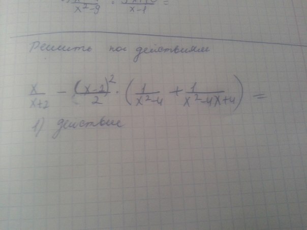 1)(в скобках) знаменатель второй дроби- формула сокращенного умножения=> x^2-4x+4 = (x-2)^2 знаменатель первой дроби в скобках- тоже формула => x^2-4=(x-2)(x+2) . Находишь общий знаменатель этих дробей.2) умножаешь дробь перед скобкой на то, что получилось в скобке. Там все сокращается и дальше уже легко