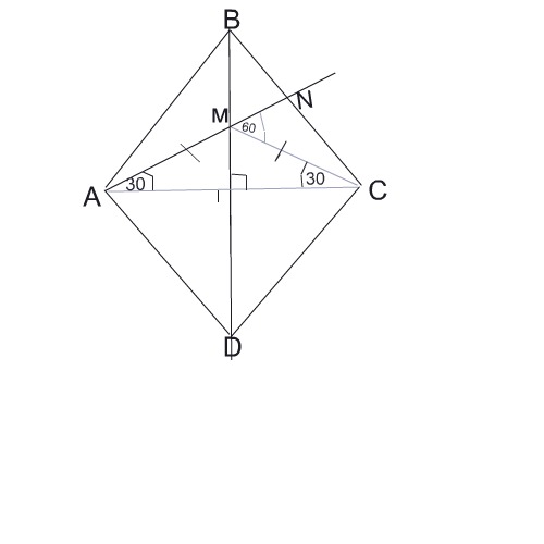 Диагонали ромба перпендикулярны. Диагонали ромба делят его углы пополам. Угол 120 гадусов ( АМС) делится диагональю ВD на два равных угла по 60°.