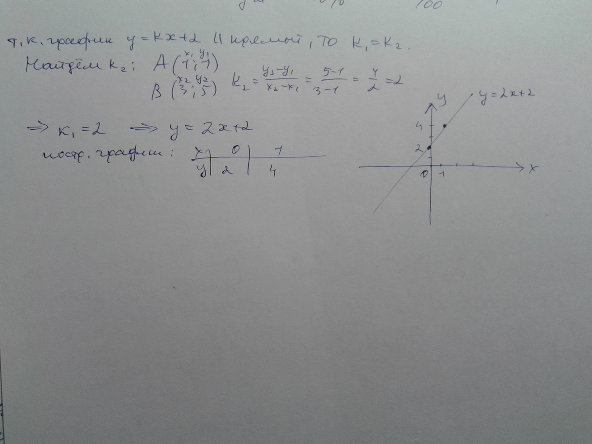 График функции y=kх +2 параллелен прямой, проходящей через точки А(1;1) и В(3;5).