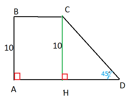 в прямоугольной трапнции ABCD меньшая боковая сторона AB=10см, угол CDA=45°. найдите расстояние от вершины C до прямой AD
