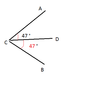 CD-биссектриса угла ACB. Угол ACD=47 градусов. Найдите градусную меру каждого из углов BCD и ACB