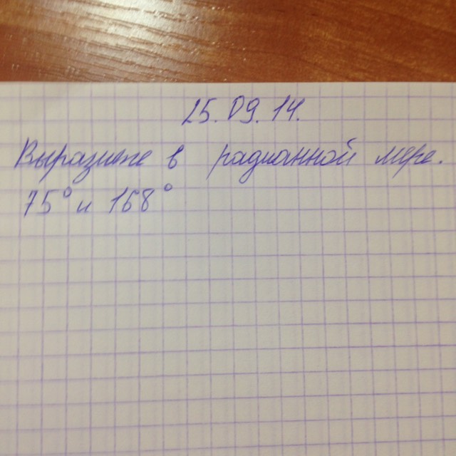 a^o=fracpi{180}cdot a;;pag.\75^o=fracpi{180}cdot75=frac{5pi}{12}\168^o=fracpi{180}cdot168=frac{14pi}{15}