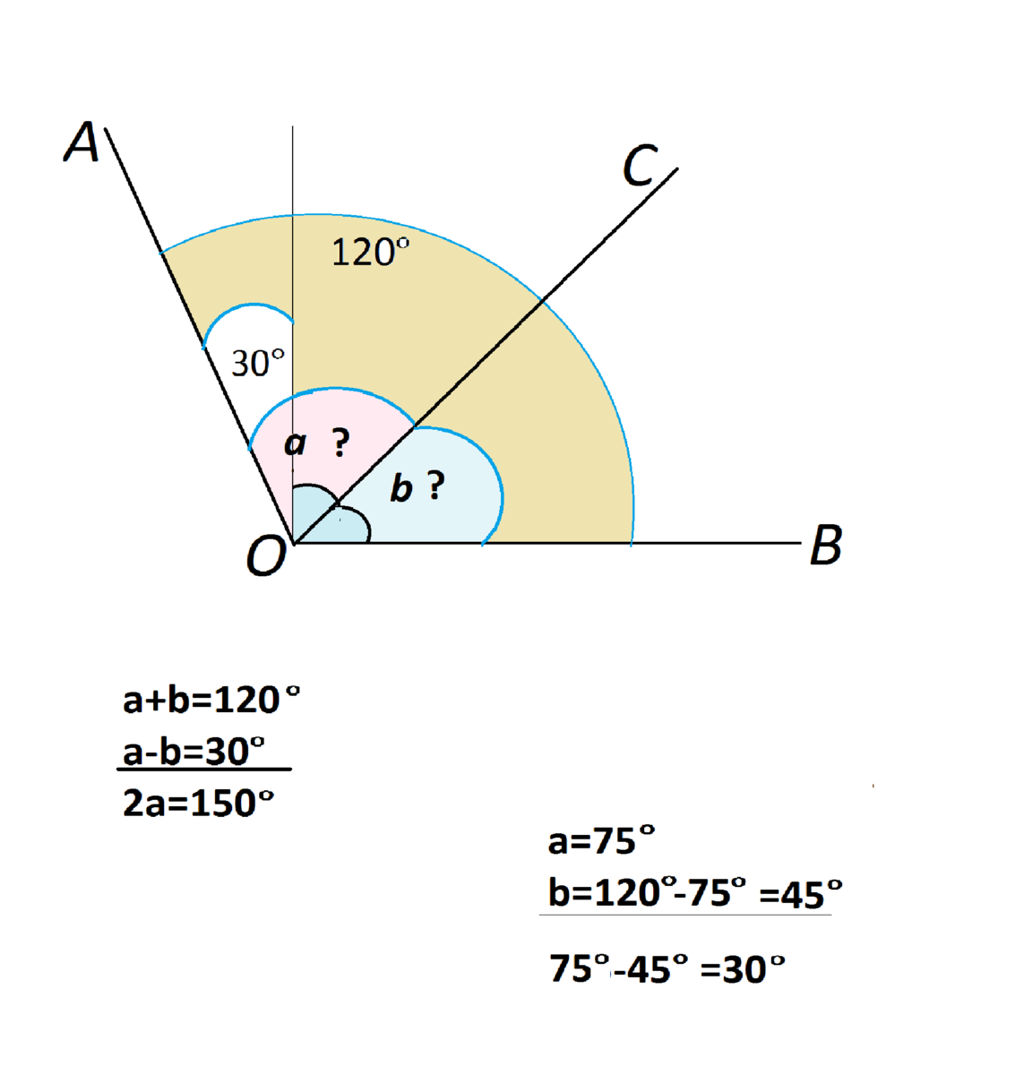 Если из суммы этих углов вычесть их разницу, останется угол, равный двум углам СОВ