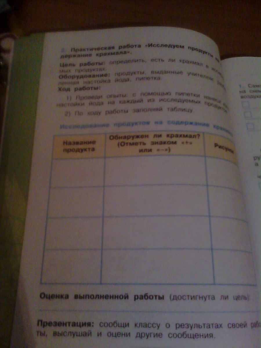 Если капнуть йода на продукт, то если он изменит цвет на фиолетово-синий, там есть крахмал. Если нет, его там нет. Пример: