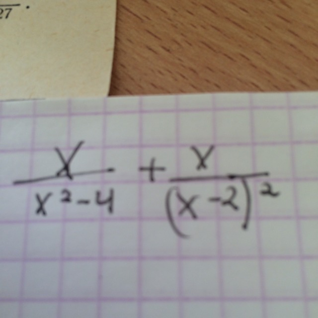 frac{x}{ x^{2} -4} + frac{x}{(x-2)^{2}} = frac{ x*(x-2)+x*(x+2) }{(x+2)*(x-2)^{2}} = \ = frac{ x^{2} -2x+ x^{2} +2x}{(x+2)*(x-2)^{2}} = frac{2 x^{2} }{(x+2)*(x-2)^{2}}