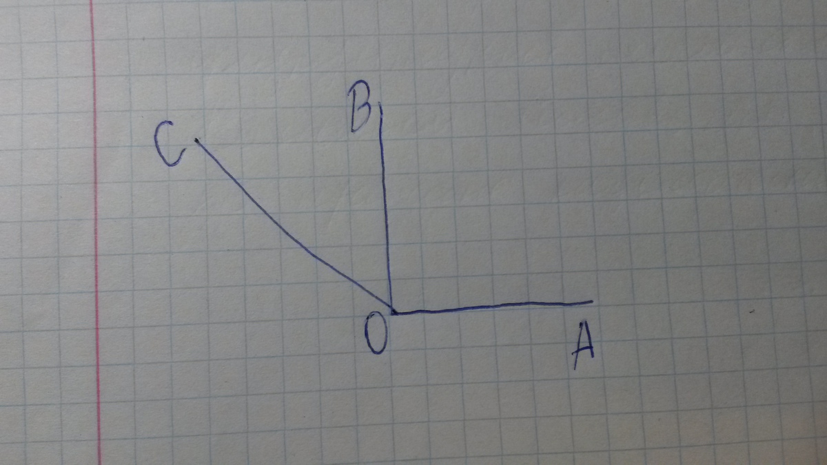 постройте прямой угол АОВ. проведите луч ОС так, чтобы угол ВОС был острым, а угол АОС оказался тупым.